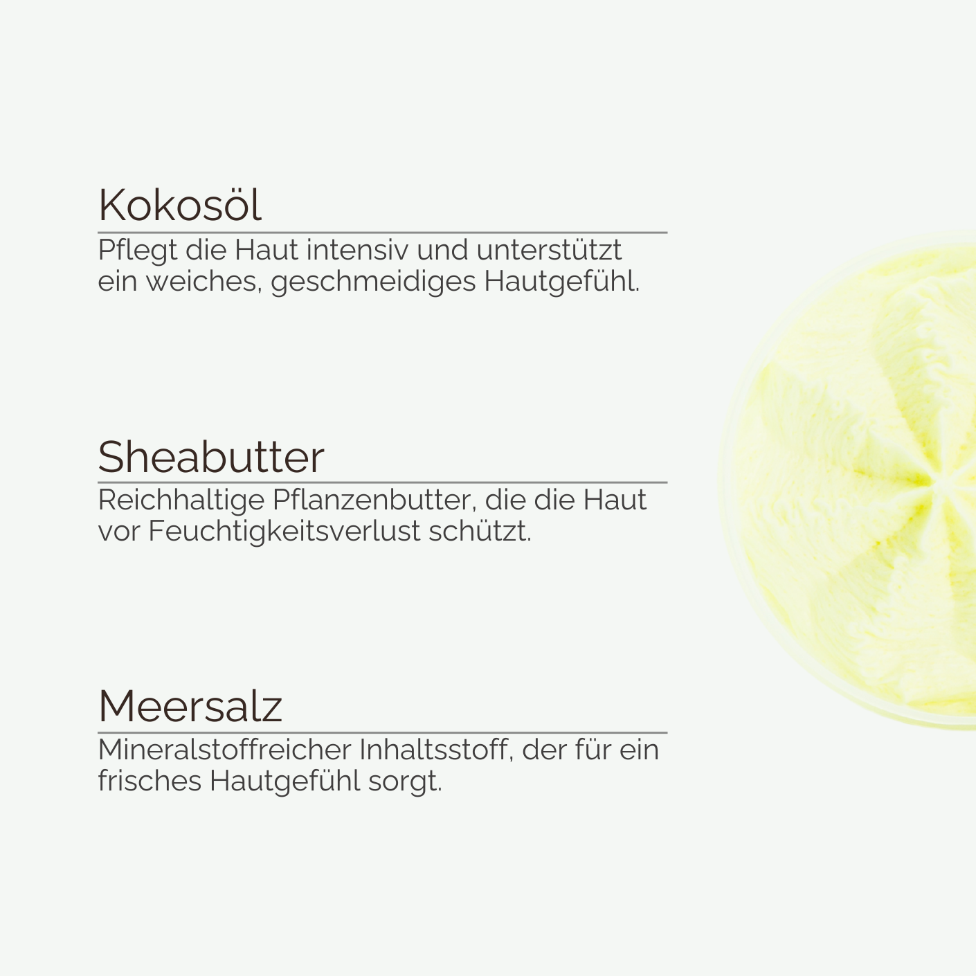 Kokosöl, Mandelöl und Sheabutter versorgen die Haut bereits während des Duschens mit wertvollen Lipiden und unterstützen ihre natürliche Feuchtigkeitsbalance für glatte, weich gepflegte Haut.