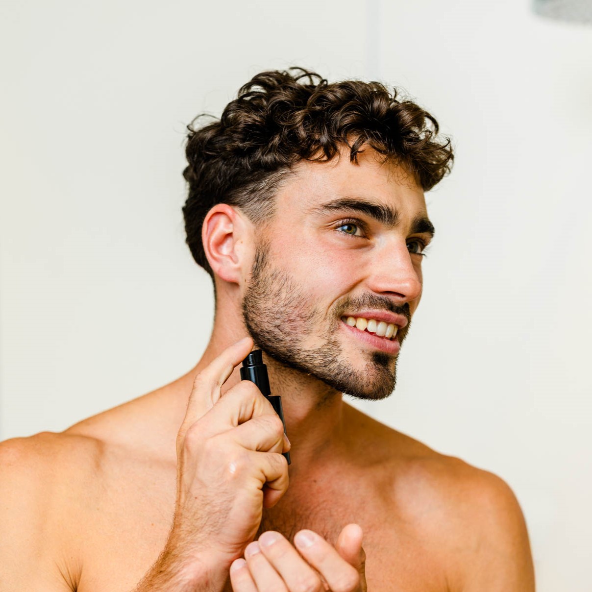 Ein paar Tropfen Bartöl in den Handflächen verreiben und gleichmäßig in Bart und Haut einmassieren. Auch ideal, um fliegende Härchen oder den Schnurrbart zu glätten. Für natürlichen Glanz und einen dezenten Duft.