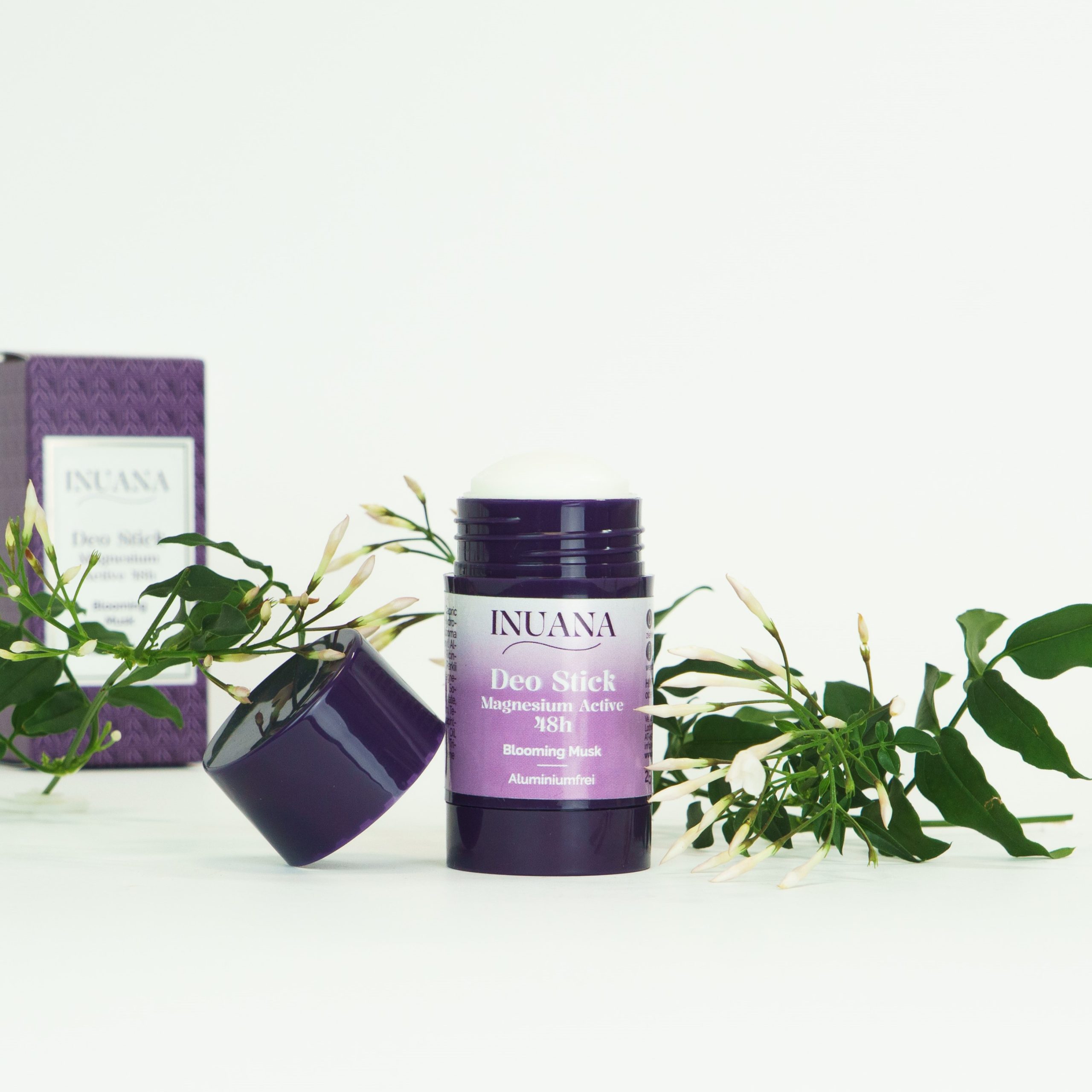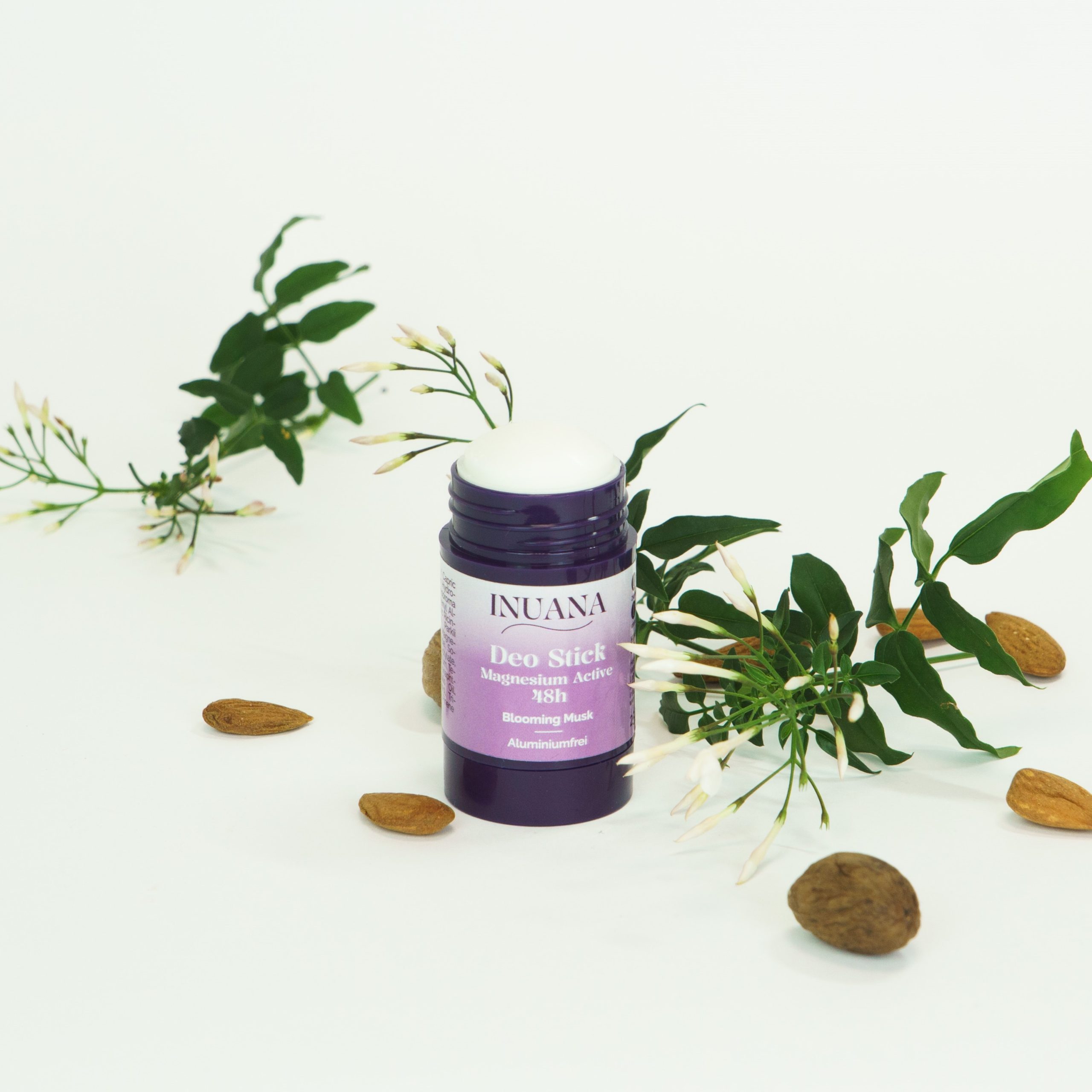 Der Inuana Deo Stick – Magnesium Active 48h | Blooming Musk bietet zuverlässigen Schutz und Pflege – ohne Aluminium & Natron.