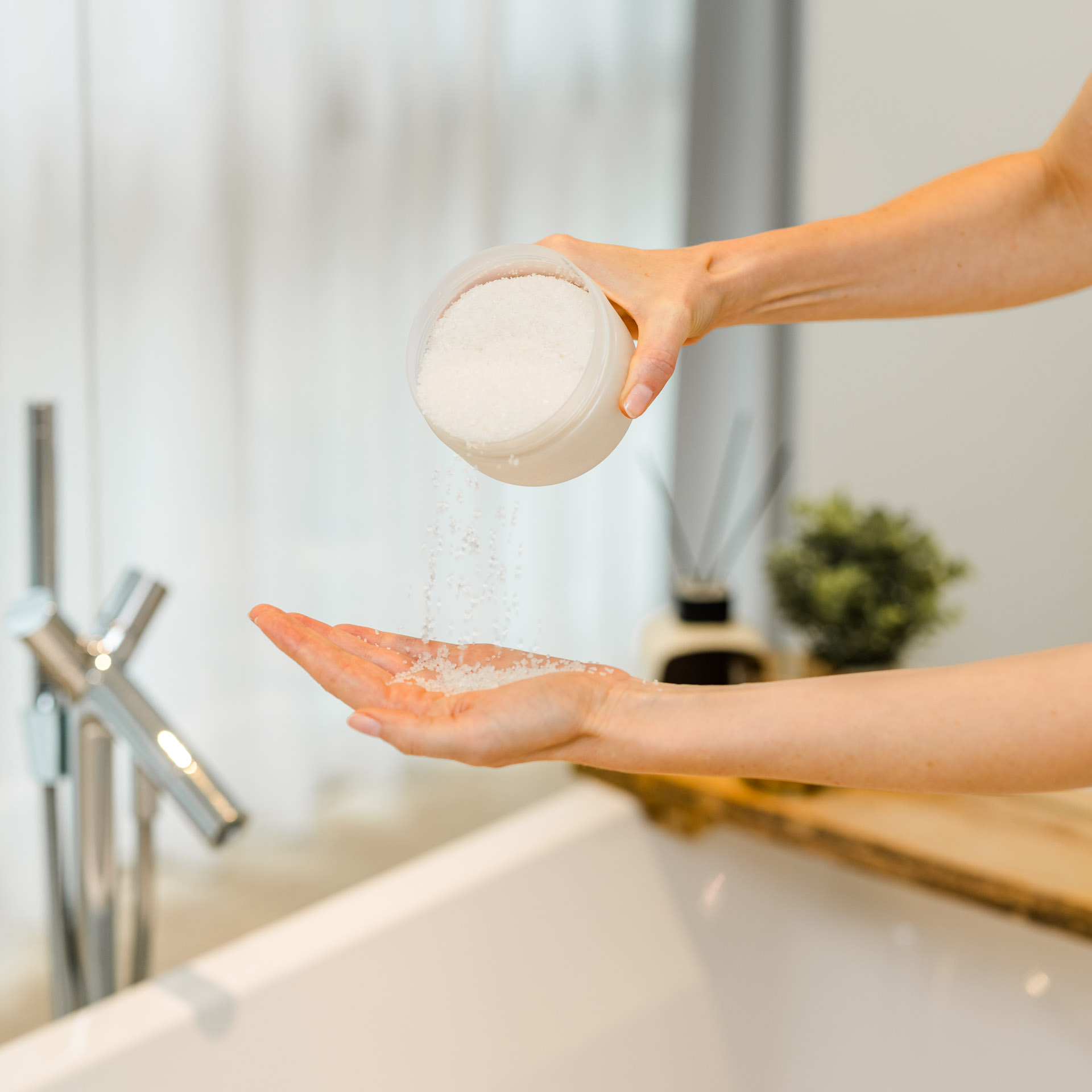 Die feinen Salzkristalle lösen sich sanft im Wasser auf und entfalten den eleganten Duft Violette Noire – ein Duft, der Körper und Geist in Einklang bringt.